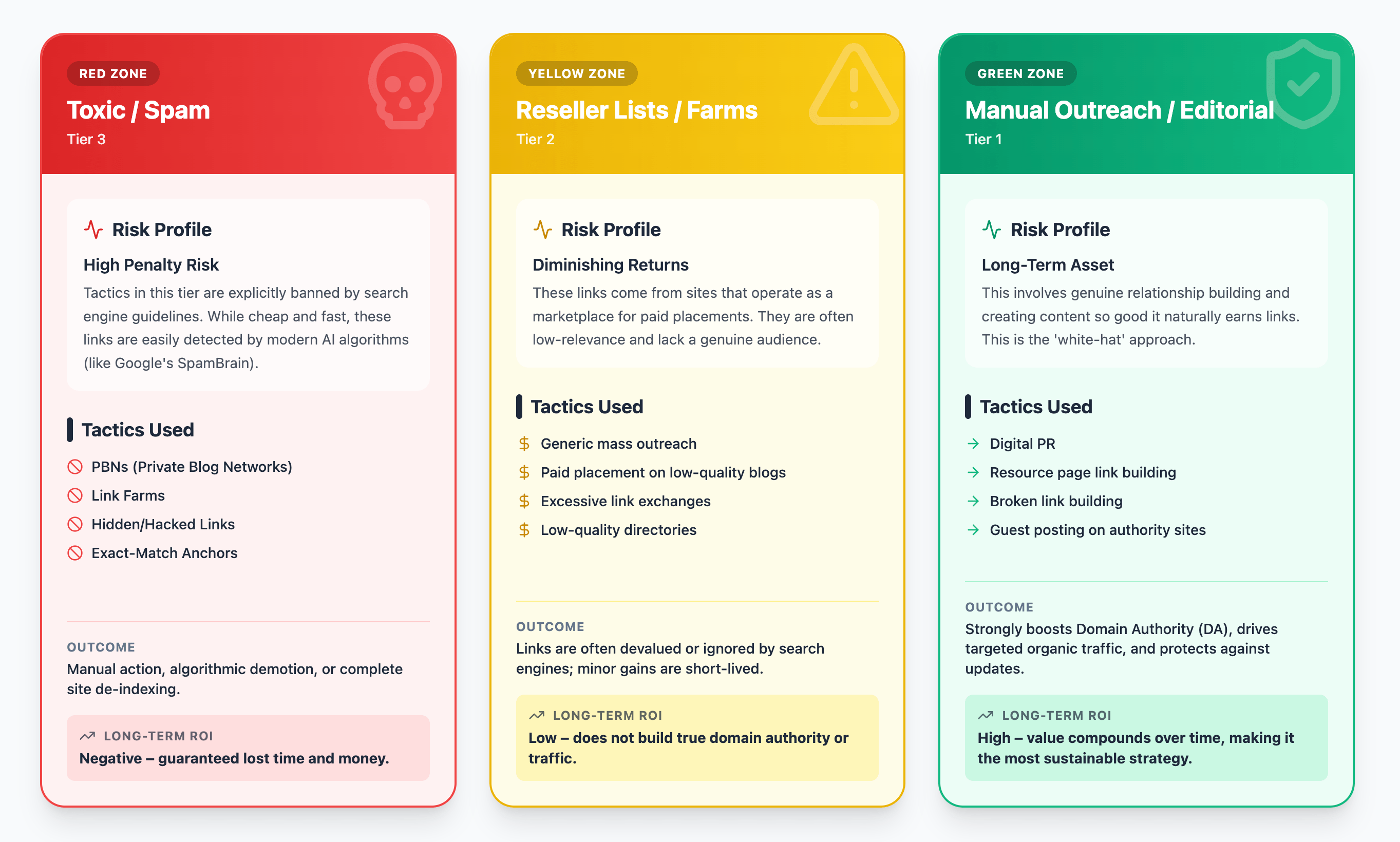 If you build 100 toxic links for $5,000, and your site gets penalized, you will have to pay an agency $10,000+ to perform a link audit, file disavow files, and wait 6-12 months for traffic to recover. The “cheap” route is the most expensive SEO mistake you can make.