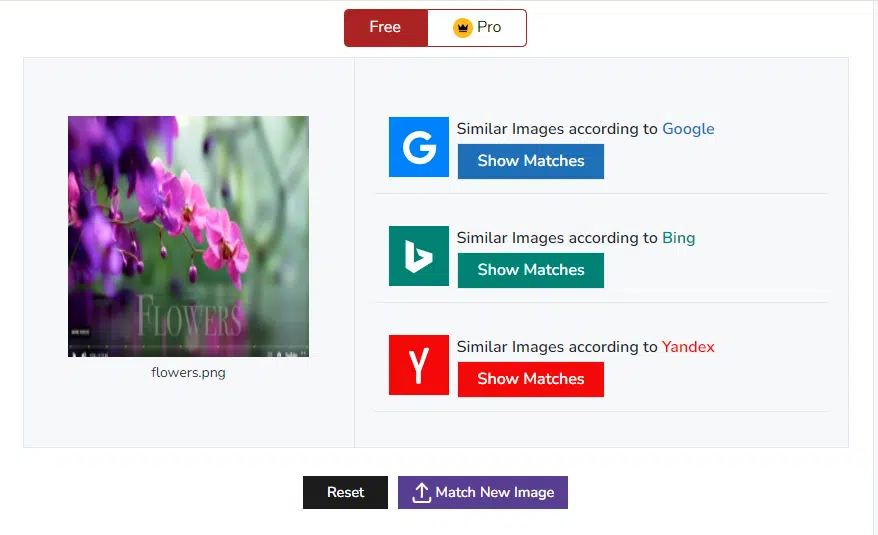 This tool, too, shows images, but all those images it showed were an exact match for the video image I uploaded.