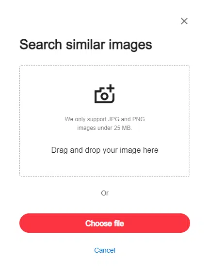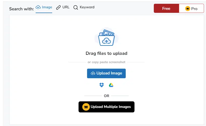 Step 3: Upload the image by dragging and dropping it into the search box or using the video URL to search.