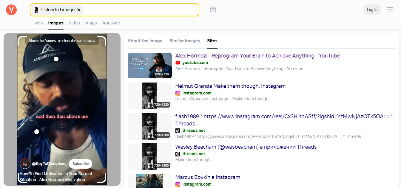 Step 6: The Yandex search engine will provide search results related to the uploaded image.