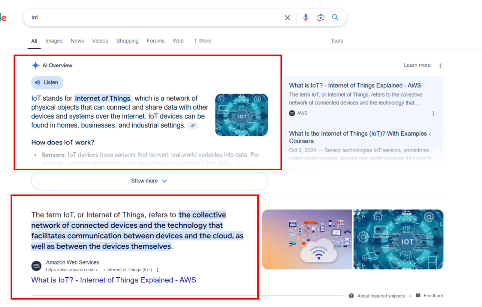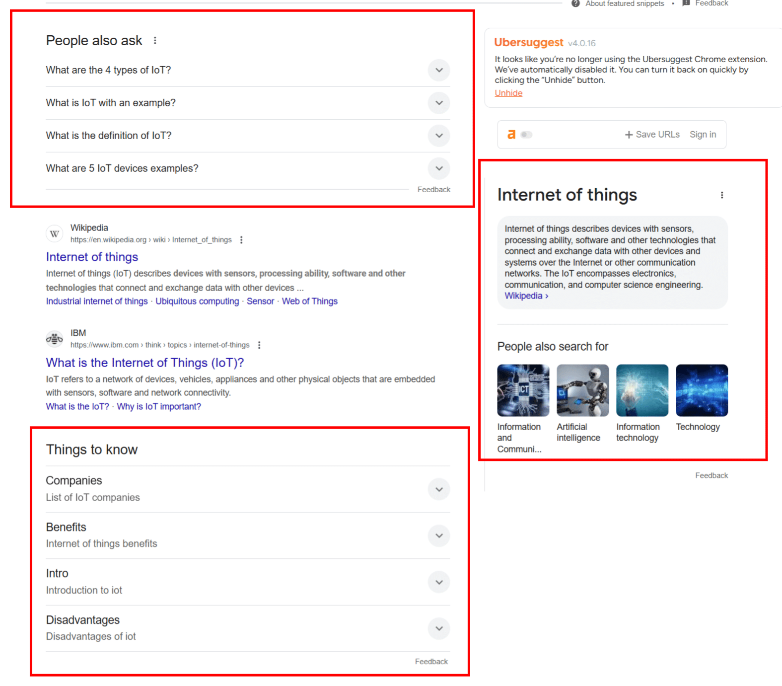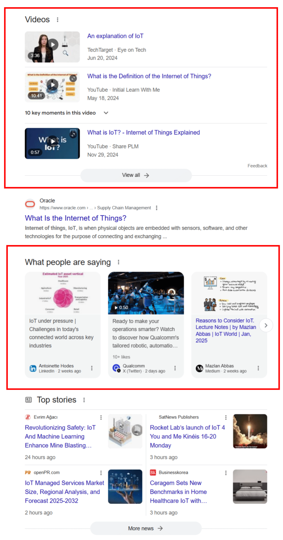 Look at the search results for “IoT” and check how many SERP features Google shows for this query.