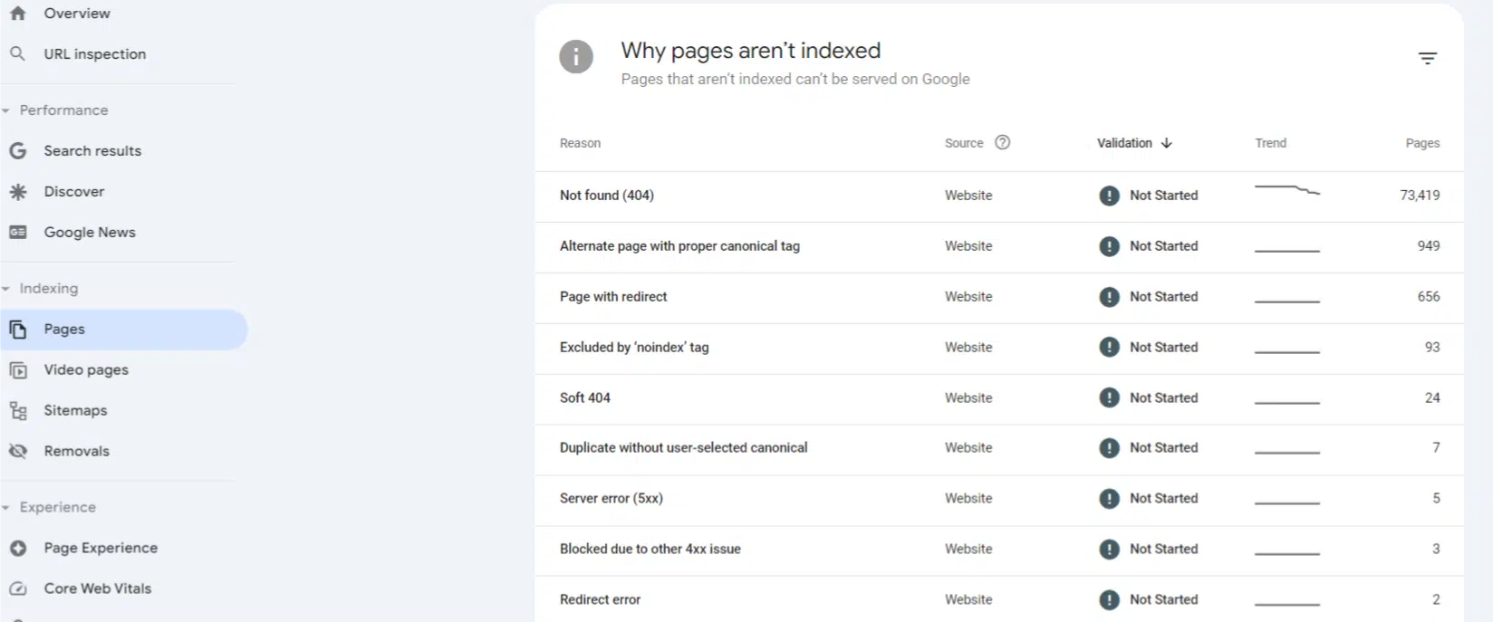 Then, scroll to the bottom of the page till you find the section “Why pages aren’t indexed.” Here, you’ll see all the errors stopping your page from being indexed. You can click on each error to understand the cause and find a fix for it.