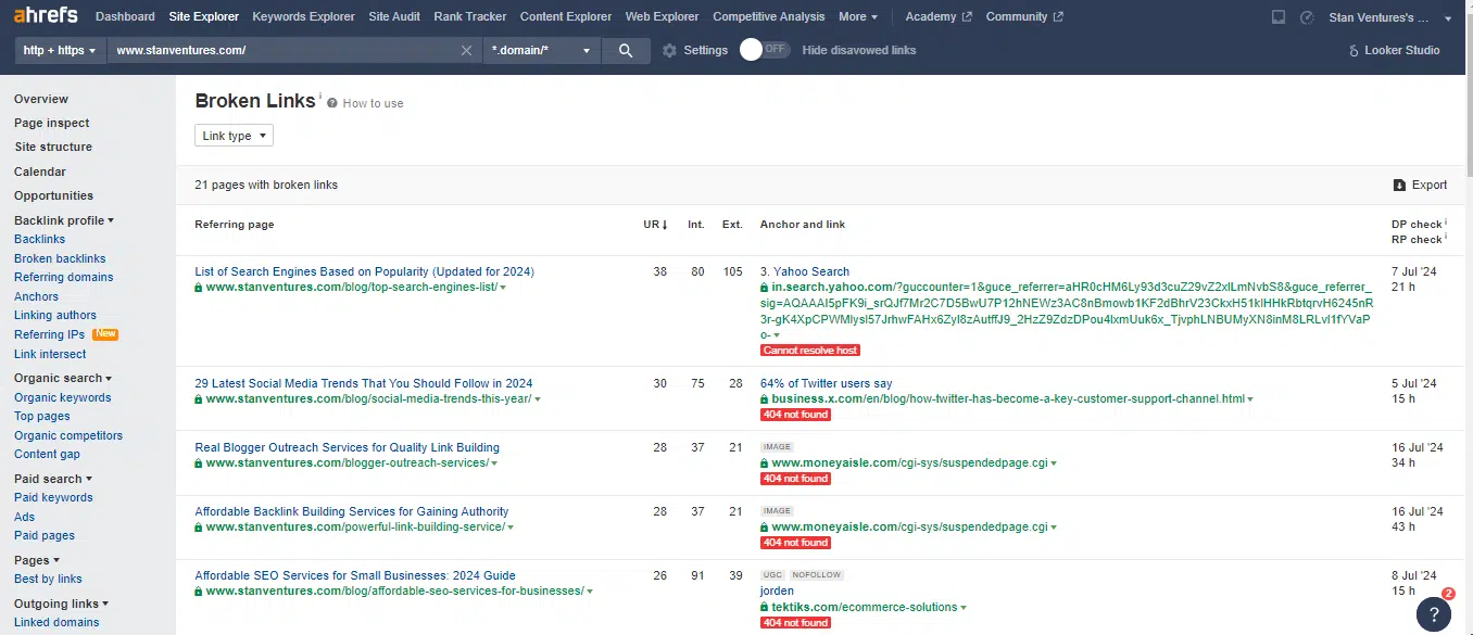 - Using Ahrefs Site Explorer to find broken outgoing links