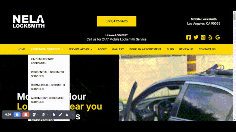 Nela Locksmith is a perfect example of GBP optimization. They have included the right keyword—locksmith service in Los Angeles—accurate and detailed information to help customers learn about their business and availability quickly, and they have included high-quality images to build trust and show authenticity.
