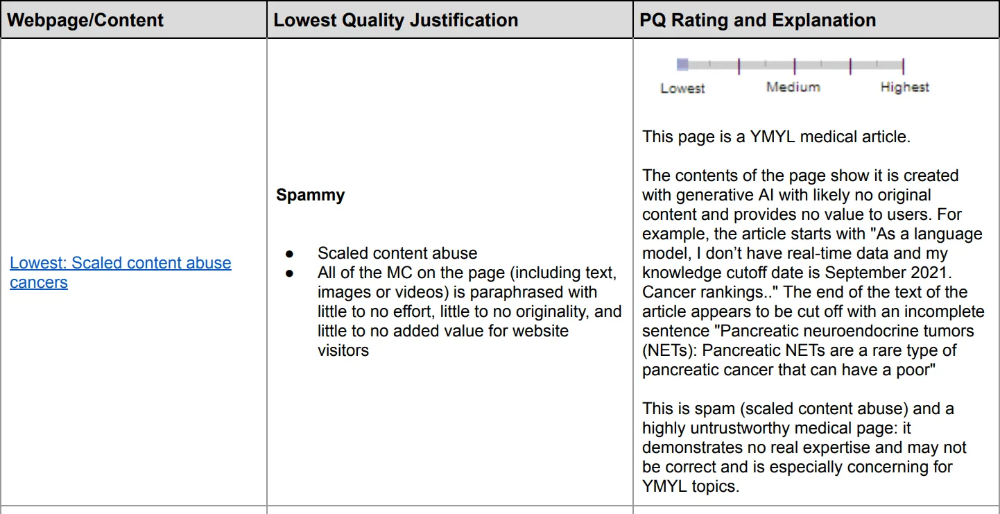 - AI-generated content that lacks originality or is mass-produced will receive the lowest quality rating.