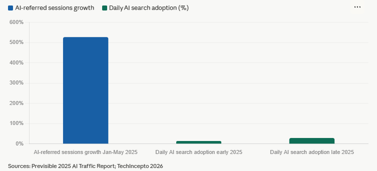 AI-referred sessions jumped 527% between January and May 2025 , signaling that users are rapidly changing how they find information.