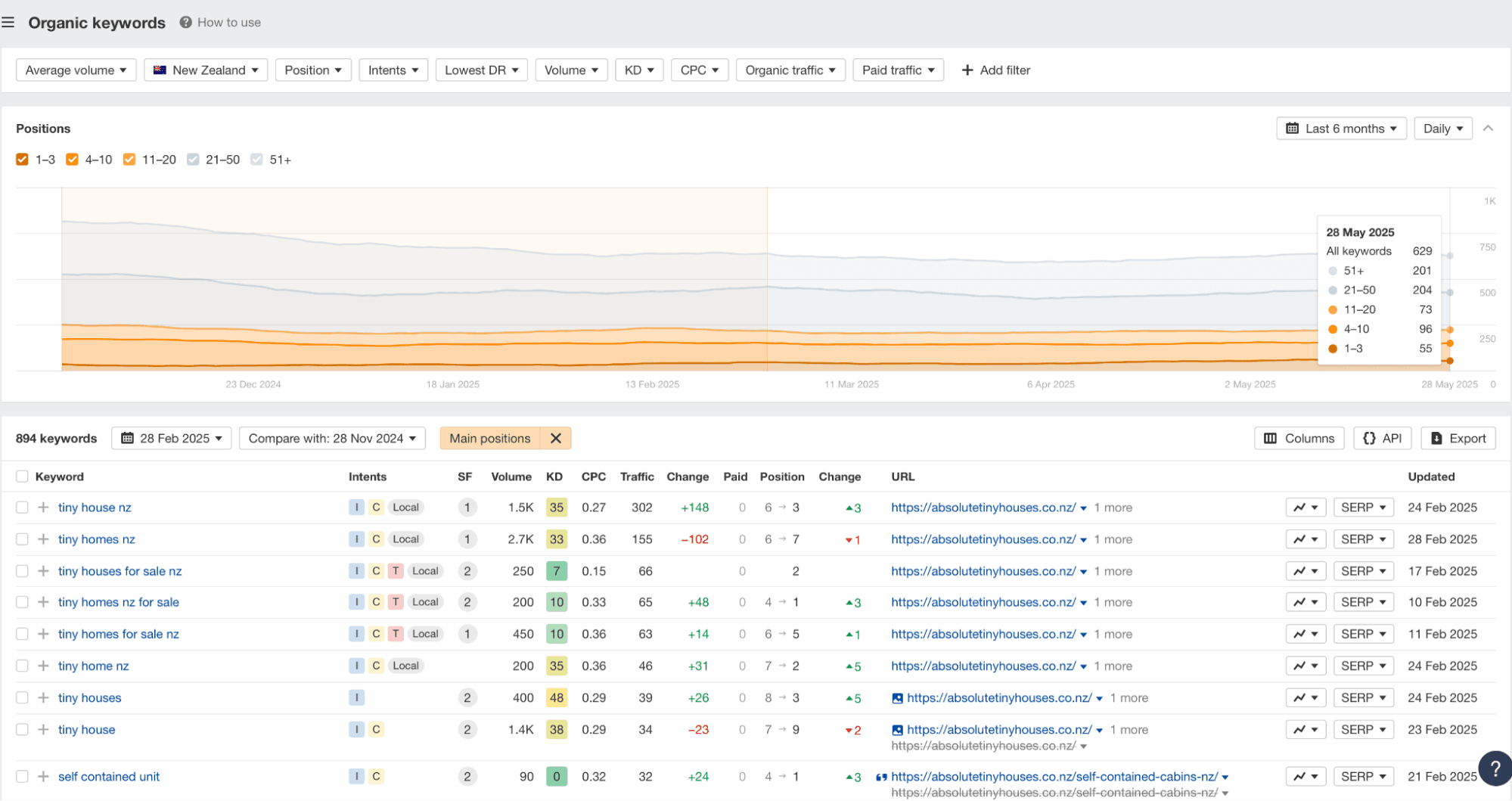With better SERP exposure and high-ranking service pages, Absolute Tiny Houses is now consistently generating quality inbound leads from across New Zealand.